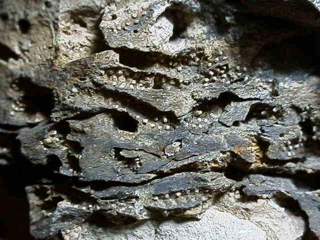 上は群体側面の風化面、下は実体が